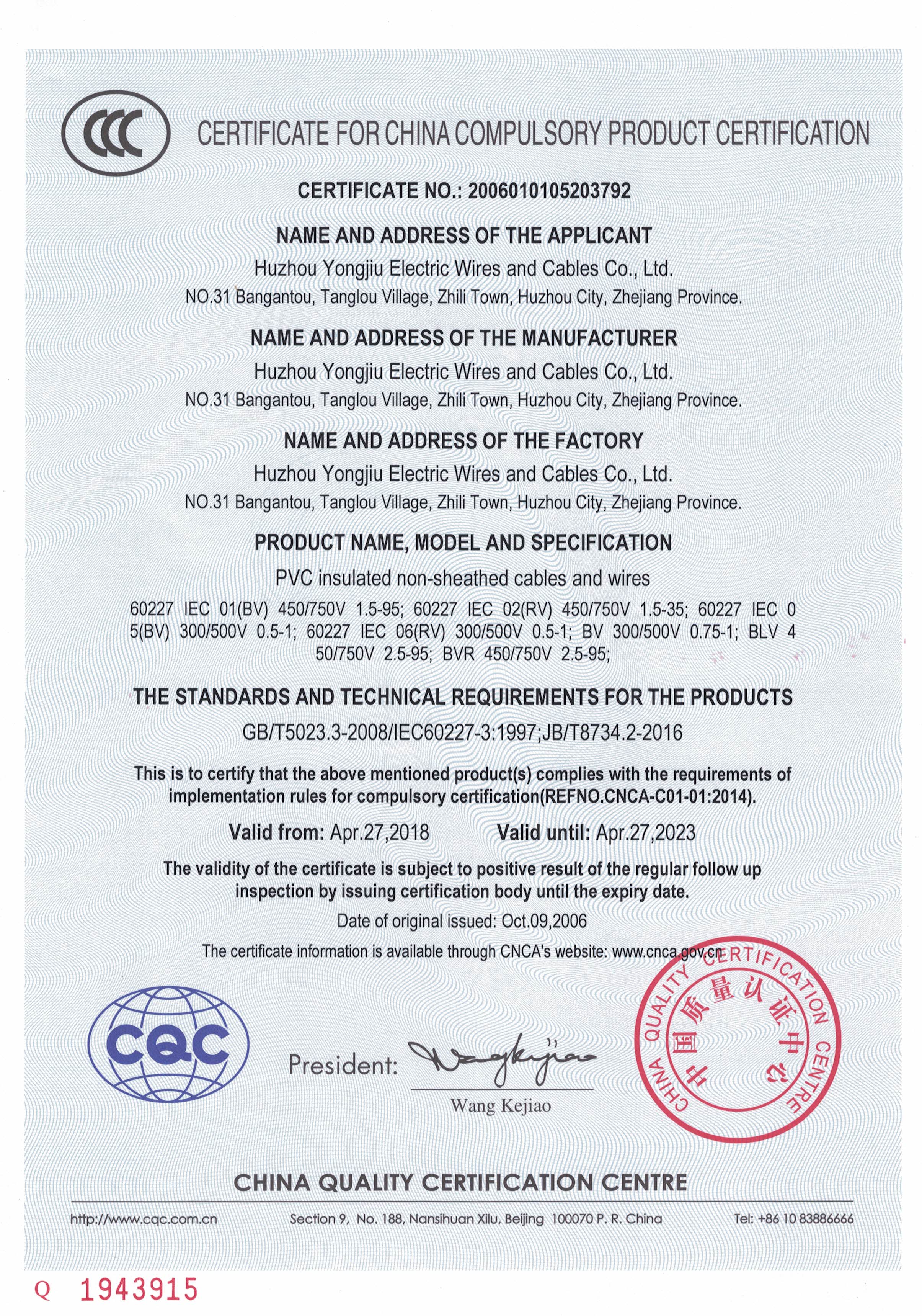 2005年, 在王阿志董事長的帶領下,經(jīng)過10年的不斷的努力和堅持,浙江永久電纜有限公司--正式注冊成立。
